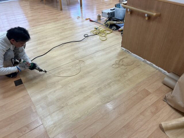 床長尺シート剥がれ補修工事・作業前