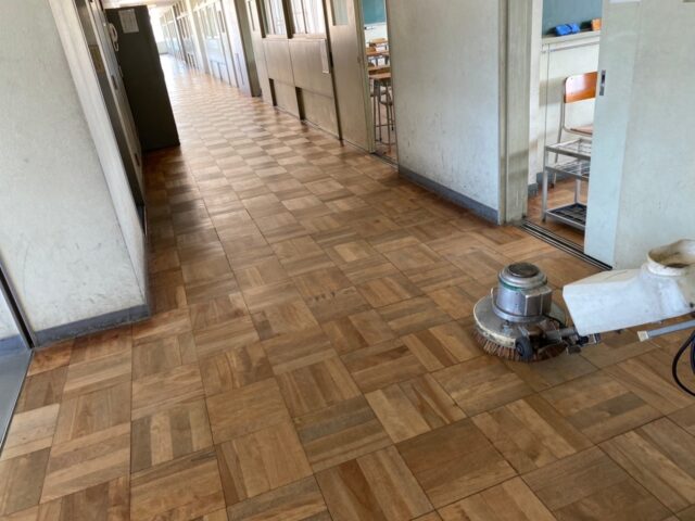 静岡県内某学校 床やトイレの清掃はもちろん、体育館暗幕の修繕や 給食室の長尺シート張替などもやらせて頂いています。 学校廊下剥離清掃作業前 学校廊下剝離清掃作業中 学校廊下剝離清掃作業後 ポリッシャー洗浄作業中 除塵作業 床材に適したワックスを使用しています。 洗面台の清掃 トイレ清掃1 トイレ清掃2 暗幕の破れ修繕前 暗幕修繕作業中 暗幕修繕作業後