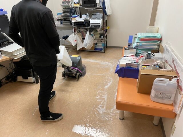 静岡市内某クリニック バッテリータイプのポリッシャーを使用して床面の洗浄を行った後にワックスを塗布しています。 自動洗浄機にて床面の洗浄作業 ポリッシャー洗浄作業中 ガラス清掃1 ガラス清掃2 換気扇内部の清掃