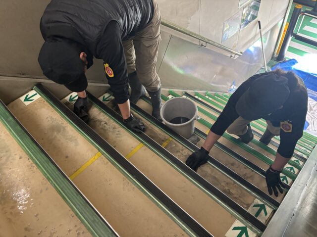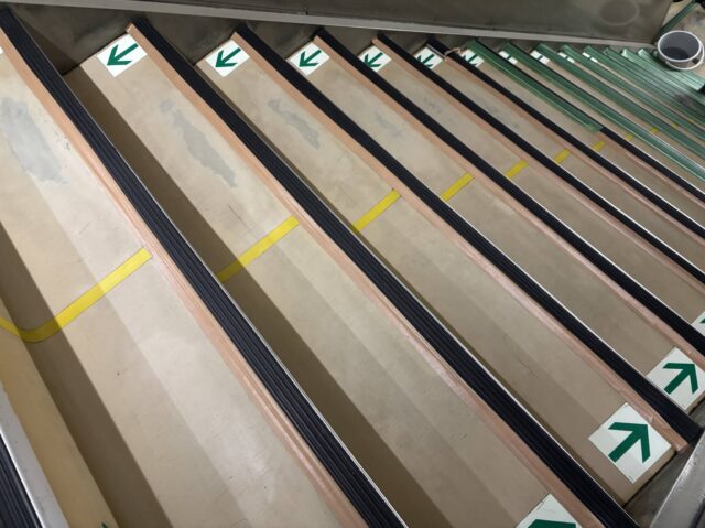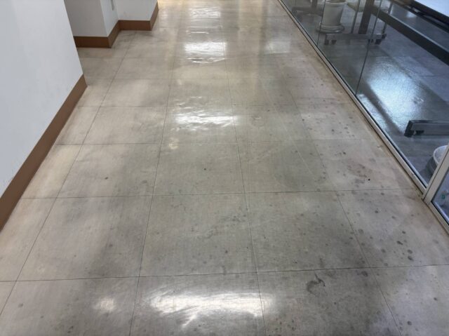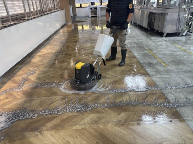 静岡県内某工場 自動車パーツを作る工場の為床に油汚れが多く 油取り専用の洗剤や、剥離剤を使用して床面の清掃を行います。 廊下剥離清掃(清掃前) 廊下剥離清掃(清掃中) 廊下剝離清掃(清掃後) 食堂剥離(清掃中) 食堂剥離(清掃後) 階段剥離(清掃中) 階段剝離(清掃後)