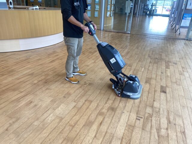 その他小型で取り回しのいい自動洗浄機を使用して、木床の洗浄清掃も行っています。